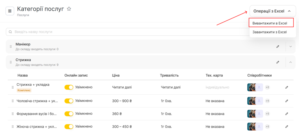 - Натисніть кнопку Операції з Excel > Вивантажити в Excel.