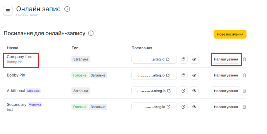 - Перейдіть до розділу Онлайн-запис > Посилання для онлайн запису.