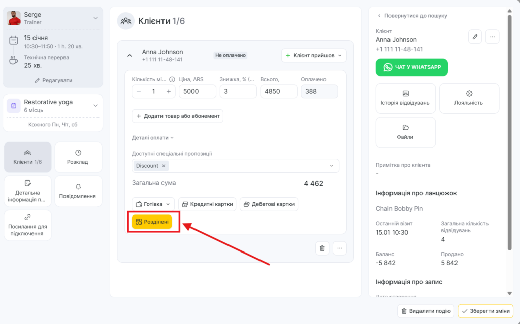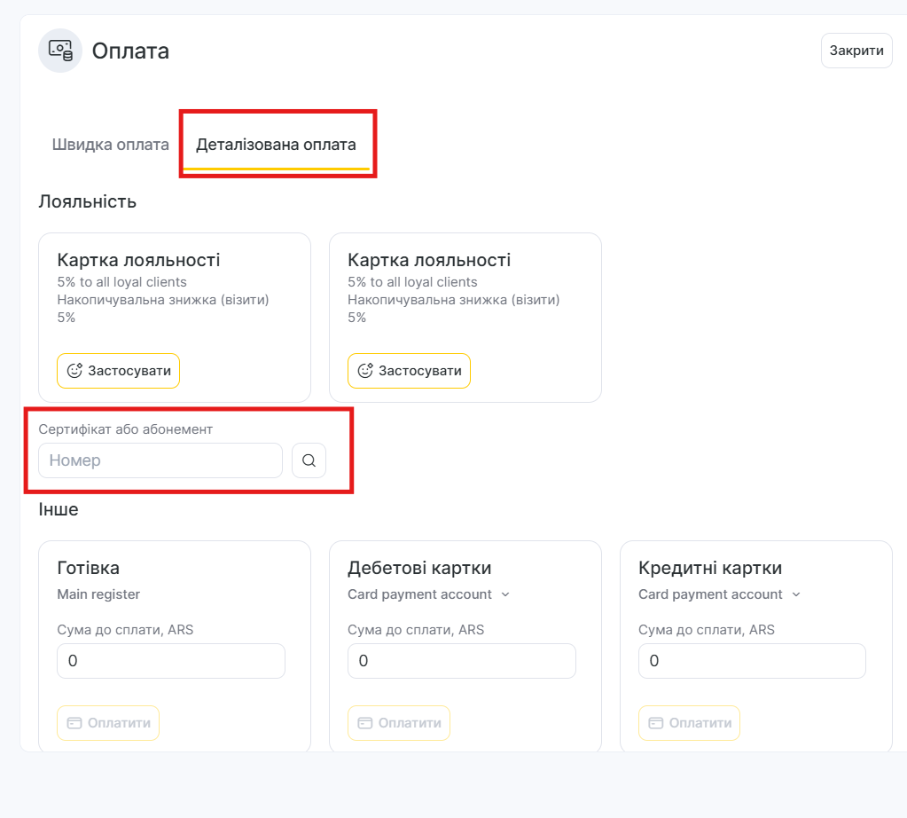 Деталізована оплата, якщо абонемент не прив’язаний до клієнта